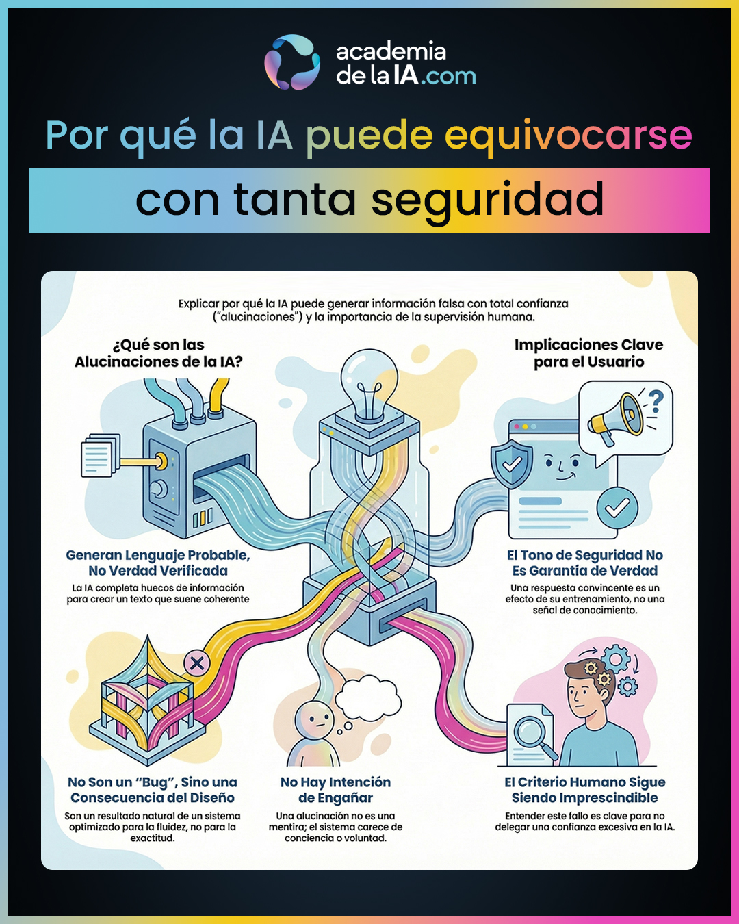 - El criterio humano sigue siendo imprescindible. Entender por qué la IA puede equivocarse con tanta seguridad es clave para no delegar confianza de más.
